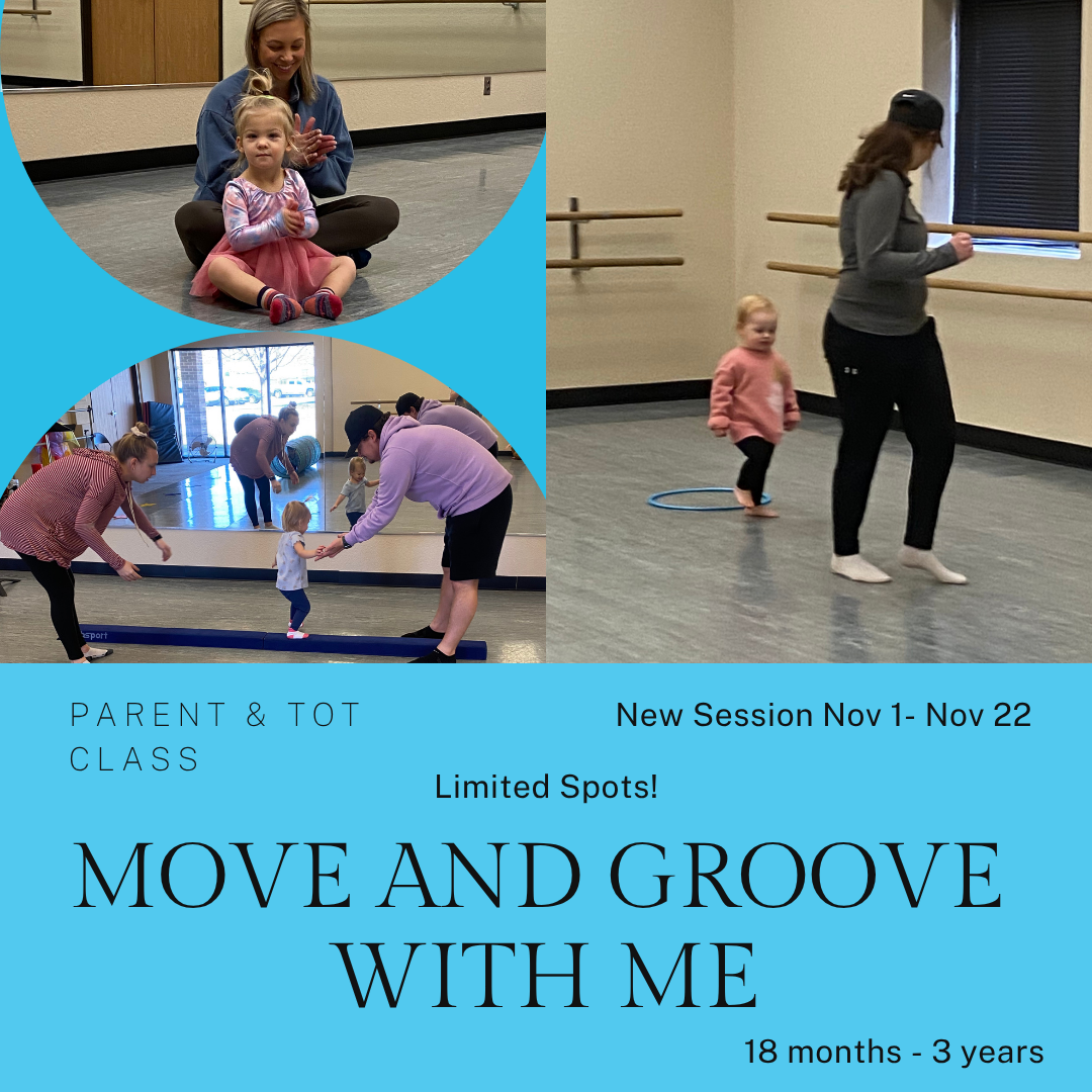 Join us for parent and tot class that introduces movement, dance, and song to young dancers. This class will explore different concepts such as place and size. With our parent we will be focusing on developing gross motor skills, balance, spacial awareness, and so much more! This class will help strengthen the bond between parent and tot and will ignite the fun of learning together!